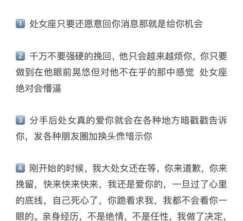 内容 | 异地恋一直是情侣们心中的难题,而异地分手则更是让人痛苦不堪的事情。但如果你真心爱着对方,不想轻易放弃,那么挽回是有可能的。本文了亲身经历者的成功经验,提供了15个实用的步骤,希望能帮助到你。 ![]() 一:接受分手的现实 如果对方已经明确表示要分手,那么你需要接受这个现实。不要死缠烂打,更不能发脾气。理智地向对方表示尊重,表达自己的遗憾和感谢。只有接受分手,才有可能真正开始挽回。 二:了解原因 分手是有原因的,了解原因是挽回的关键。你需要和对方沟通,找出导致分手的原因。只有了解原因,才能有针对性地采取措施。 ![]() 三:反思自己 分手的原因不全是对方的责任,你也需要反思自己的问题。回忆在异地恋中的自己是否做得足够好,是否有过失言失态,是否有过不理解和支持对方。认识到自己的问题,才能更好地改善情况。 四:适时联系对方 适时联系对方,并不是表达挽回的目的,而是为了维持一份良好的关系。通过短信、电话或邮件等方式,询问对方的情况,关注对方的生活,表达自己的关心和祝福。 五:保持自己的生活 分手后不要过于沉溺于感伤和痛苦中,而应该保持自己的生活。继续工作、学习、运动、旅行等,丰富自己的生活,让自己更加积极和有吸引力。 ![]() 六:改进自己 在保持自己生活的同时,你也需要改进自己。学习新知识、掌握新技能,提升自己的能力和魅力。只有改进自己,才能更有吸引力地吸引对方回到你身边。 七:积极沟通 沟通是关键,但你需要积极而不是被动。你需要发挥自己的主动性,主动约见对方,以轻松的方式交流,让对方感受到你的真诚和善意。 八:表达情感 在沟通中,你需要适时表达自己的情感。不要过于急躁和焦虑,也不要做过头,而是以平和、真诚的态度表达自己的爱和渴望。 九:寻求共同点 在沟通中,你需要寻求共同点。回忆以前共同的回忆和经历,找出彼此的共同点和价值观。只有建立共同点,才能增进互相之间的理解和信任。 十:给对方时间和空间 尽管你想尽快挽回对方,但也不能过于急躁。给对方足够的时间和空间,让对方有时间思考和处理自己的问题。同时,也要保持与对方的联系,让对方感受到你的关心和支持。 十一:展示自己的改变 在适当的时候,你需要向对方展示自己的改变。无论是外表上的改变,还是内心上的成长,都需要让对方看到你的变化和进步。只有展示自己的改变,才能更好地吸引对方。 十二:关注对方的需求 在挽回过程中,你需要关注对方的需求和希望。在沟通中听取对方的想法,尊重对方的选择,给予对方适当的支持和鼓励。 十三:寻求帮助 挽回是需要勇气和智慧的,有时候需要外界的帮助。你可以向朋友、家人或者专业人士寻求帮助和建议。有时候,外界的建议和指引可以事半功倍。 十四:不要轻易放弃 挽回并不是一件容易的事情,需要耐心和坚持。不要因为一时没有结果就轻易放弃,要坚信自己的感情和努力。只要你真心付出,就一定会收获爱情。 十五:经验 挽回并不是一蹴而就的事情,需要经验和。在挽回成功后,你需要认真自己的经验和教训,为以后的感情发展打下坚实的基础。 结尾:异地分手并不代表爱情的结束,而是一个新的开始。只有通过挽回,才能让爱情更加珍贵和坚定。希望本文提供的15个步骤能够帮助到你,让你收获幸福的爱情。 |
