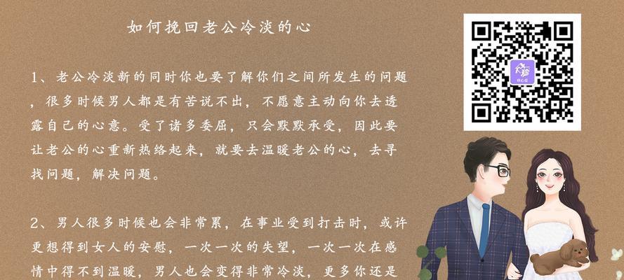 婚姻生活中不可避免会遇到一些困难和问题,尤其是当老公想离婚的时候,老婆往往会感到心灰意冷、不知所措。但是,面对挑战,我们不能放弃,我们需要努力去挽救我们的婚姻,重新赢得对方的心。本文将从多个方面为大家介绍如何挽回老公的心。  认清问题的本质:仔细分析导致婚姻破裂的原因,并制定相应的解决方案。 保持冷静:在老公想离婚的时候,首先要保持冷静,不要做出过激的反应。因为情绪化的行为只会让情况更加恶劣。  接受现实:承认婚姻出现问题,并努力去解决它们。只有勇于面对现实,我们才有可能找到解决问题的方法。 沟通是关键:在婚姻中,沟通非常重要。双方都要有耐心,听取对方的意见和想法,并尽可能地做出妥协。 让对方感受到你的爱:不要只是说出爱,而是要付诸行动。通过温馨的小举动,让对方感受到你的爱,从而加强双方之间的感情。  学会包容:每个人都有自己的性格和习惯,我们需要互相包容和理解。在婚姻中,需要学会忍让和宽容,不要因为小事而争吵。 寻找婚姻中的美好:回想一下婚姻中美好的时刻,重新体验那份感情。这有助于双方重新燃起对婚姻的热情。 别人的经验可以借鉴:可以向身边的朋友或专业的心理医生寻求帮助和建议,听取他们的意见和建议,从而更好地挽回婚姻。 独立自强:在挽回老公的同时,也需要注意自己的内心状态和情绪。通过工作和兴趣爱好,提高自己的内在修养和魅力。 改变自己的不良习惯:诚实地检查自己的不良习惯,并努力去改正它们。通过自我提高,我们可以吸引对方重新回到我们身边。 恢复信任:在婚姻中,信任非常重要。如果双方之间已经失去了信任,那么需要通过行动去重新获得它。 寻求专业帮助:如果婚姻问题比较严重,那么需要寻求专业帮助。通过心理咨询和治疗,我们可以更好地理解自己和对方,从而找到解决问题的方法。 时间和耐心:挽回婚姻需要时间和耐心。需要有足够的耐心和毅力去克服困难,才有可能重新赢得对方的心。 爱需要付出:在婚姻中,爱需要付出和维护。只有双方都愿意为婚姻付出,才能走出困境,重拾幸福。 挽回婚姻是一项复杂而漫长的过程,需要各方面的努力和支持。只要我们坚持信念,相信爱的力量,就有可能找到重拾幸福的方法。 |