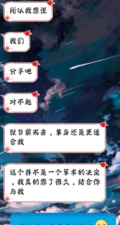 内容 | 当恋情走到尽头,分手对于任何人都是一种伤痛。但是,当我们真正爱一个人时,我们不希望失去他们。如果你正在痛苦地思考如何挽回已经离开你的爱人,请继续阅读。本文将为你提供一些有用的建议和技巧,帮助你重新点燃爱情的火花,并重新赢得他们的心。 ![]() 一:理解分手的原因 在努力挽回你的爱人之前,你需要仔细地思考分手的原因。无论是因为沟通不畅还是因为其他原因,了解问题的根源是解决问题的第一步。 二:反思自己的行为 在关系中,我们每个人都会有过错和错误。回顾过去的经历,考虑自己是否有任何行为导致了分手。如果有,请坦诚地承认自己的错误并道歉。 ![]() 三:重新建立联系 如果你和你的爱人已经分手了,你需要重新建立联系。可以发一封简短而有感情的电子邮件或简讯,表达你的想念和歉意。 四:不要过分追求 虽然你希望挽回你的爱人,但也需要注意不要太过于追求。给他们一些时间和空间来冷静思考,不要给予过多的压力。 五:寻求朋友的帮助 你的朋友可以帮助你度过难关并提供有用的建议。与他们交流,寻求他们的支持和指导。 ![]() 六:做出改变 如果你认为自己需要改变以使关系更好,那么就去做。让自己变得更好,更成熟和更有吸引力。 七:保持积极乐观 即使你的爱人拒绝了你的请求,也不要失去勇气或希望。保持积极乐观的态度,并相信一切都会好起来。 八:切勿使用激烈手段 在试图挽回你的爱人时,不要使用激烈或不恰当的手段。不要给他们发愤怒或威胁的信息,这只会让情况更加糟糕。 九:认真倾听对方 如果你想让对方回到你身边,你需要认真倾听他们的想法和感受。理解他们的需求和期望,并尽力满足他们。 十:表达你的爱和关心 当你重新建立联系时,表达你的爱和关心。告诉他们你珍惜他们的存在,并愿意付出努力来改善关系。 十一:提高自己的价值 要挽回你的爱人,你需要提高自己的价值。学习新技能,培养自己的才能,并成为一个更好的人。 十二:承担责任 如果你的行为导致了分手,那么就承担责任。向他们道歉,并承诺将来改进。 十三:保持坚定 在挽回你的爱人时,你需要保持坚定。不要在悲伤和沮丧的情况下放弃。相信你的努力最终会取得成功。 十四:表达你的计划 当你和你的爱人重新建立联系时,表达你的计划。告诉他们你的计划和目标,并请求他们的支持和帮助。 十五:最后一次尝试 如果你已经尽力挽回你的爱人,但是没有成功,那么就不要强求了。最后一次尝试,但也需要接受失败的现实。如果他们真的不想回到你身边,那么你需要接受这个事实并向前看。 结论:挽回你的爱人可能是一项艰巨的任务,但如果你坚持下去,你就有机会重新点燃爱情的火花,并重新赢得他们的心。通过理解分手的原因,反思自己的行为,重新建立联系并做出改变,你可以重新获得爱情。 |