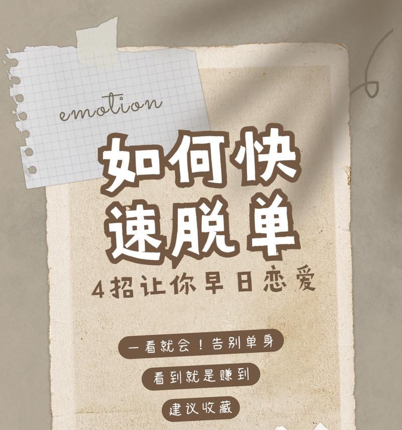 标题 | 快速脱单攻略(从心理到行动,成功脱单的秘诀大揭秘!) |