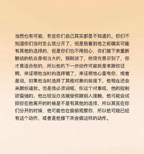 恋爱中的分手是一件很痛苦的事情,无论是谁提出分手,都会对另一方造成不小的伤害。但如果是男人主动提出分手,那么这段感情是否真的已经到了无法挽回的地步呢?接下来,我们就来探讨一下这个问题。  一、男人提分手的原因 男人提出分手,往往是因为感情出现了问题或者双方的价值观发生了冲突,不能再继续在一起。也有可能是他觉得另一半不适合自己,或者有其他更好的选择。所以,想要挽回这样的情况,首先要了解男方提出分手的原因。 二、看看男人是怎么提出分手的 男人提出分手的方式很多种,有可能是直接说出来,也有可能是通过电话、短信或者其他方式传达。如果男人采用了比较婉转的方式来提出分手,那么挽回的可能性会更大一些。  三、分手后双方的处理方式 分手后,双方的处理方式也是影响挽回的关键因素之一。如果另一方在分手后表现得很冷淡,或者刻意回避男人,那么挽回的难度会更大。如果另一方能够积极应对分手,并且表现出改变的意愿,那么挽回的可能性就会增加。 四、男人提分手时的情绪状态 男人提出分手时,情绪状态可能不太稳定,这也是影响挽回的一个因素。如果男人提出分手时情绪特别激动,那么需要给他一些时间冷静下来。如果男人提出分手时比较平静,那么可以直接跟他好好谈一谈。 五、了解男人的心理变化 男人提出分手后,内心会发生很大的变化,这也是影响挽回的因素之一。有些男人会因为分手后另一半的反应而感到内疚和不安,这时候就需要另一半给予安慰和支持。有些男人则会更加坚定自己提出分手的决定,这时候就需要寻找更好的挽回策略。  六、选择合适的挽回方式 要想挽回男人,就需要选择合适的挽回方式。可以通过聊天、约会、送礼物等方式来拉近彼此的距离,也可以通过改变自己的一些不足来吸引男人的注意。 七、坦诚沟通是关键 无论采用什么样的挽回方式,坦诚沟通都是非常重要的。双方都需要将心中的想法、困惑和感受说出来,才能够更好地解决问题和改善关系。 八、重温甜蜜回忆 重温甜蜜回忆也是一种挽回方式。可以回忆起两人在一起的美好时光,以及对彼此的爱和珍视。这样可以让男人重新感受到自己曾经深爱过的人。 九、不要过分追求 挽回男人不是一件容易的事情,需要有耐心和恒心。但也不能过分追求,如果对方已经明确表示不想再继续这段感情,那么就需要接受这个事实,寻找属于自己的幸福。 十、关注自己的变化 在挽回男人的过程中,也需要关注自己的变化。可以学习一些新技能,提升自己的魅力和吸引力,让男人重新看到你的价值。 十一、借助外力 有时候,借助外力也可以帮助我们更好地挽回男人。可以找一些共同的朋友或者亲友来帮忙说服男人,或者通过一些情感咨询师的指导,让男人重新认识自己和这段感情。 十二、要有信心 挽回男人需要有信心,相信自己能够改变对方的想法和决定。但也需要有理性的思考和判断,不要盲目追求,否则可能会事倍功半。 十三、积极面对未来 无论最终挽回与否,都需要积极面对未来。无论是重新开始还是放手离开,都是一种成长和历练。只有这样才能更好地走向自己的幸福。 十四、结合具体情况分析 每段感情的分手原因和挽回策略都是不同的,需要根据具体情况进行分析和处理。不能盲目跟随他人的建议,也不能轻易放弃自己的努力。 十五、 男人提出分手,并不意味着就没有挽回的可能性了。关键在于了解男方提出分手的原因、采取合适的挽回方式、坦诚沟通、重温甜蜜回忆等。挽回男人需要有耐心和恒心,同时也需要关注自己的变化和积极面对未来。只有这样,才能在爱情中走得更稳更远。 |