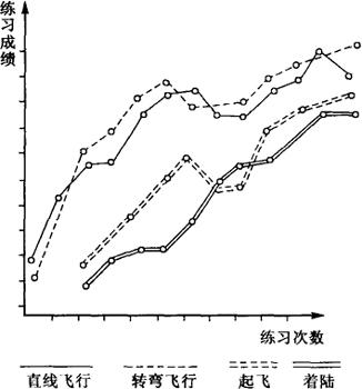 利用参照标准反映飞行学员趋向或超过标准进步情况的曲线。一般以横坐标表示飞行训练的各个阶段,以纵坐标表示参照标准操作等级(见下图)。不但能反映学员进步的速度,还能反映学员最后达到的飞行水平,是决定是否淘汰学员的一个依据。