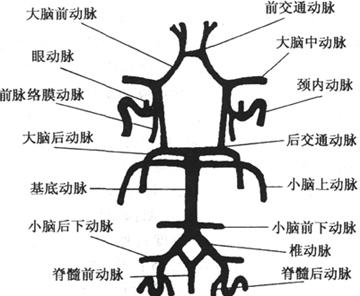 脑底部血管连成的环。通过连接颅内两个大动脉系统——颈内动脉和椎-基底动脉的血管形成。左、右两个大脑前动脉由短的前交通动脉在视交叉前面连接,整个颈内动脉系统通过一对后交通动脉与基底动脉系统连接,后交通动脉自颈内动脉向后走行,分别与大脑后动脉基部连接。