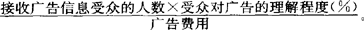 广告效果评价指标的一种。用以衡量广告传播阶段广告费用投入所产生的广告传播效果。计算公式:广告传播效率=。增加接收广告信息受众的人数,增强受众对广告的理解程度以及降低广告费用都可提高广告传播的效率。通常,广告传播阶段广告费用的增加可以使接收广告信息的受众人数增加,也可在某种程度上提高广告受众对广告的理解程度。广告受众对广告的理解程度还取决于他们本身的知识经验以及广告创意等因素。