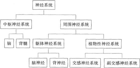 有机体重要组成部分。众多有组织的神经细胞(神经元)的集合体。调节人和动物体内各种器官活动以适应内外环境变化的全部神经装置的总称。人体神经系统包含约1011个~1012个神经元以及为数更多的神经胶质细胞。庞大的神经细胞数量以及神经细胞之间的复杂组织联系使神经系统具有复杂的功能。它由中枢神经系统和周围神经系统组成。中枢神经系统由脑和脊髓组成;周围神经系统由躯体神经系统和植物性神经系统组成,其中,躯体神经系统又可分为脑神经和脊神经,植物性神经系统又可分为交感神经系统和副交感神经系统(见下图)。通过分布于身体各部分的许多感受器和感觉神经,获得机体内外环境变化的信息;通过中枢神经系统的调节,使机体适应内外环境的变化。