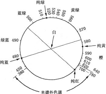 一译“色环”。色觉原理表示方法。孟塞尔颜色立体模型圆周的环圈(见下图)。可很方便地用于表明颜色光混合的各种关系。若在色调环的任何一点取一种颜色,使它与对边的颜色混合,如将黄色与蓝色混合,则产生白色或灰色;将色调环上任何相邻的两种颜色混合,则可得到介于两者之间的颜色,如将红与黄混合,可得到二色连接线上的各种颜色。