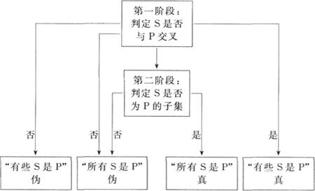 释义 | 【谓语交叉模型】 拼译:predicate intersection model 集理论模型的一种。用于解释对全称语句和特称语句的加工过程。C.A.梅耶1970年提出。包括两个加工阶段:(1)判定句子的主语(S)和谓语(P)两个概念的属性集是否交叉或重叠,即是否有相同成员;(2)判定主语是否为谓语的一个子集,即主语是否为谓语的一个下级概念(见图)。以全称语句为例,对语句“所有的台风都是小麦”,在第一阶段的加工过程中,通过对主语“台风”和谓语“小麦”两个概念的属性集的搜索和比较,发现它们之间无交叉或重叠,在加工的第一阶段即可做出否定的反应。而对语句“所有的石头都是红宝石”或“所有的麻雀都是鸟”,由于它们的主语和谓语两个概念的属性均有的一定的交叉或重叠,故在完成第一阶段的加工后,须转入第二阶段作进一步加工,视其主语是否是其谓语的一个子集。在第二阶段的加工中,要搜索和比较主语和谓语两个概念的全部属性,若谓语的每一个属性都是主语的属性,则可确定主语是谓语的一个子集(如“所有的麻雀都是鸟”),并可做出肯定反应;否则,主语就不是谓语的一个子集,并可做出否定反应(如“所有的石头都是红宝石”)。但对特称语句来说,在第一阶段的加工中即可做出肯定或否定的反应。如语句“有些石头是红宝石”,在第一阶段的加工中,通过对“石头”和“红宝石”两个概念的属性集的搜索和比较,发现其间有交叉或重叠,即可做出肯定反应,不需转入第二阶段的加工。而对语句“有些台风是小麦”来说,在第一阶段的加工中,通过对其主语和谓语两个概念属性集的搜索和比较,发现它们彼此无交叉或重叠,故即可作出否定反应。根据谓语交叉模型的预测,对特称语句的判定要快于对全称语句的判定(主语和谓语两个概念的属性集无交叉或重叠的全称语句除外),因前者只需一个阶段的加工,后者则需两个阶段的加工;对于全称语句,判定主语和谓语两个概念的属性集无交叉的语句比较快,而判定主、谓语两个属性集有交叉的语句较慢。该模型也可说明范畴大小效应。如,对语句“麻雀是动物”的判定较慢,而对“麻雀是鸟”的判定较快,因“动物”的范畴比“鸟”的范畴大,“麻雀”与“动物”两个属性集的交叉程度比“麻雀”与“鸟”两个属性集的交叉程度低,需要较广泛地搜索和比较,故做出判定较慢。对此尚有争议。 谓语交叉模型 |