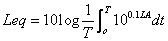 在一定时间间隔内,声场中某点的A声级按能量的平均值。其计算公式如下: