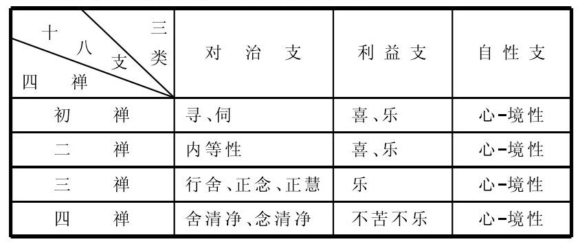 禅 梵 Dhyāna 音译全称“禅那”。意译“静虑”、“思维修”、“思维修习”、“弃恶”、“功德丛林”等。佛教用语。意谓心住一境,正审思虑。《俱舍论》卷二十八谓:“依何义故立静虑名?由此寂静能审虑故。审虑即是实了知义,如说心在定能如实了知。”佛教认为禅有对治疑惑、生诸功德的效用,并谓“一切功德多依静虑”。佛教主张禅是色界的心才能具有的性质,它与欲界心的性质不相应,所以,只有舍弃了欲界的烦恼,才能获得。按修习功力之不同,禅又可分作四种境界,称“四禅”或“四静虑”。四禅从心理活动划分共有三类十八支,如图:  “对治支”指能对治(断除)及对治后所达到的一些心理活动或状态。“利益支”指进入相应境界之后的主观感受。“自性支”指这一切心理活动及主观感受都是在“心-境性”这种禅定状态中进行的。佛教又将这四禅与色界四禅天配置起来,认为修习四禅者,死后可投生于相应的四禅天中。禅有时与定联用,合称禅定。 |