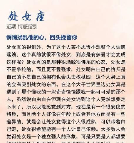 失去前男友的心情是非常痛苦的,但是只要你拥有正确的心态和方法,就有机会重新得到他的爱。在本文中,我们将介绍7招成功挽回前男友的技巧,让你重新点燃爱情之火。  一:重建自信心态 你需要找到自己的问题所在,改正自己的缺点,并且相信自己有足够的魅力和吸引力,才能真正地吸引前男友回到你身边。 二:谈一次真诚的对话 在平静的情况下,向前男友坦白自己的想法和感受,表达出自己的真心和诚意,让他看到你的改变和努力。  三:展现自己的成长 通过行动向前男友展示出自己的成长和改变,让他看到你是一个不断进步的人,并且愿意为他付出。 四:注意言行举止 在日常生活中,要注意自己的言行举止,让前男友看到你的温柔、善良和体贴,让他感受到你的爱。 五:多角度了解前男友 了解前男友的需求和心理,根据他的喜好和兴趣进行相应的沟通和交流,建立更好的感情基础。  六:创造浪漫氛围 通过巧妙地创造浪漫氛围,让前男友感受到你的浪漫和温馨,增加两人之间的感情互动。 七:激起他的回忆 回忆是最好的情感纽带,在回忆中激起前男友的感情,让他重新回到过去的美好时光,重新体验那份真挚的感情。 八:保持良好的交流 保持良好的交流是维系感情的重要途径,及时沟通能够让你们更好地解决矛盾和问题,增加两人之间的默契和信任。 九:给他一些惊喜 在平淡乏味的生活中,给前男友一些小惊喜或者礼物,表达出你对他的关心和爱意,让他感受到你的温暖和关怀。 十:重新开始 如果你们已经尝试了以上所有的方法,但是前男友还是没有回到你身边,那么就应该放下过去,重新开始自己的生活。 十一:不要过于执着 在挽回前男友的过程中,不要过于执着和固执,要有所取舍,以实际效果为重。 十二:不要放弃自己的快乐 即使在挽回前男友的过程中没有成功,也不要放弃自己的快乐和生活,要学会在自己的生活中找到快乐和满足。 十三:相信时间的力量 时间可以治愈一切创伤,相信时间的力量,给自己和前男友一些时间和空间,让大家都能够冷静地思考自己的生活和感情。 十四:成为更好的自己 无论成功还是失败,通过这个过程,让自己成为更好的自己,提高自己的情商和人际交往能力,让自己变得更加优秀。 十五: 通过以上7招技巧,我们可以发现,在挽回前男友的过程中,最重要的是真心实意地对待对方,并且通过自己的努力和改变来吸引他的回归。同时,我们也要学会在自己的生活中找到快乐和满足,以积极的心态去面对挽回爱情的过程。 |