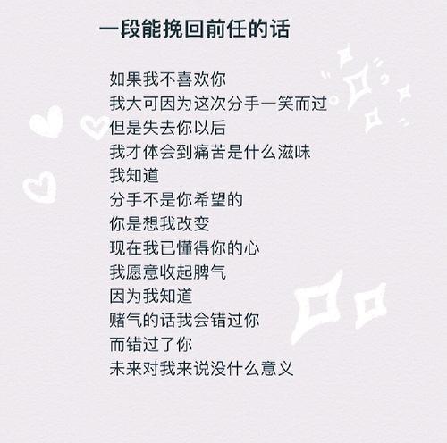 | 标题 | 用感人的分手挽留(15句话让TA再次回到你的怀抱) |