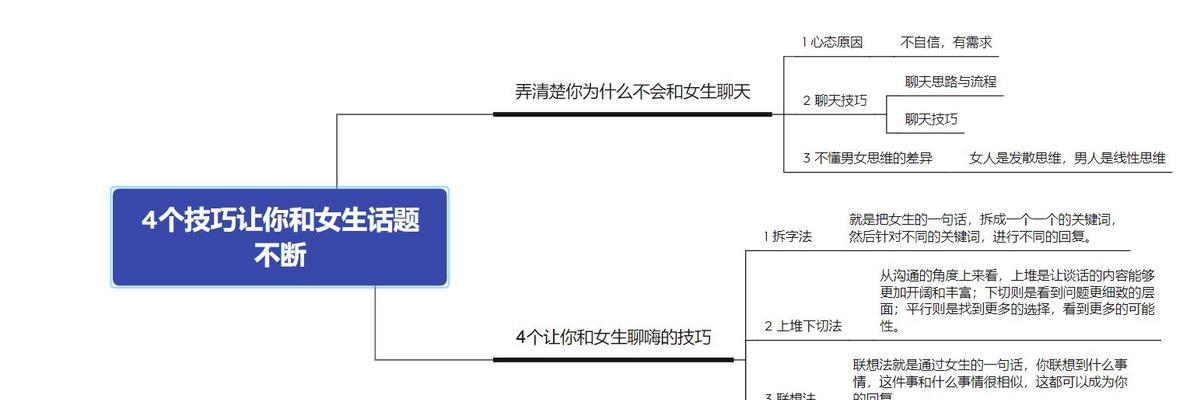 和女生聊天是很多男生的难题,无论是在交友、恋爱还是社交场合,如果不会找到话题,很容易让女生觉得无趣或者闷。但其实,和女生聊天是可以学习的。本文将为大家分享一些小套路,帮助大家轻松找到话题和女生聊天,让你变得更加有趣、迷人。  了解女生兴趣爱好 女生和男生一样也有自己的兴趣爱好,例如健身、旅游、美食等。如果你知道女生的兴趣爱好,可以针对这些话题展开聊天,让女生觉得你很懂她。 聊聊最近的新闻热点 新闻热点是许多人都关注的话题,可以通过聊天了解对方的看法和态度。同时也可以展示出你的阅读素质和思考能力。  分享你的趣事或者有趣的故事 有趣的故事或者趣事是一个很好的聊天话题,不仅能够带来愉悦的氛围,也可以让女生更好地了解你。 询问对方的生活状态和近况 关心对方的生活状况是一个很好的交流方式。通过聊天了解对方的工作、生活、家庭等方面的情况,让你们之间的关系更亲密。 谈论共同的兴趣爱好 如果你们有共同的兴趣爱好,可以聊一聊这些话题,让女生觉得你们有很多话题可以聊。  聊聊电影、音乐和文艺作品 电影、音乐和文艺作品是很好的谈资。你可以询问女生喜欢哪些电影、音乐和文艺作品,并分享自己的看法和感受。 询问对方的看法和观点 在聊天中,你可以通过询问对方的看法和观点来引导话题。这不仅可以让女生觉得自己的意见很受重视,也可以让你更加了解她。 谈论旅游经历和旅游计划 旅游是很多人都喜欢的话题。你可以向女生询问她曾经去过哪些地方,对哪些地方有兴趣,或者正在计划去哪些地方。 聊一聊美食和饮食习惯 美食和饮食习惯是许多女生都很关注的话题。你可以向女生询问她喜欢吃什么,有哪些特别的饮食习惯等。 谈论最近看的书或者电视剧 如果你们都看过同样的书或者电视剧,可以谈论一下你们的感受和看法。这不仅可以打破僵局,也可以让你们之间的话题更加丰富。 谈论宠物和动物 宠物和动物是一个很好的聊天话题。你可以向女生询问她是否有宠物,喜欢哪种动物等。 分享你的见闻和经验 你可以分享自己的见闻和经验,例如旅游经历、工作经验等。这不仅可以增加女生对你的认识,也可以展示出你的成熟和思考能力。 询问对方的家庭和朋友 家庭和朋友是许多人都关心的话题。你可以向女生询问她的家庭和朋友,了解她们的生活情况和关系。 表达自己的情感和想法 在聊天中,你可以表达自己的情感和想法。这不仅可以让女生更加了解你,也可以增强你们之间的情感交流。 和回顾聊天内容 在聊天结束之前,你可以对聊天内容进行和回顾,让女生感觉到你很有耐心和细心,并且对这次聊天非常重视。 和女生聊天是一项需要技巧和练习的能力。通过本文介绍的小套路,相信大家已经学会了如何找到话题和女生聊天。记住,在聊天中要真诚、有趣,并且尊重对方的意见和想法。希望大家都能够掌握这些小技巧,让自己变得更加迷人。 |