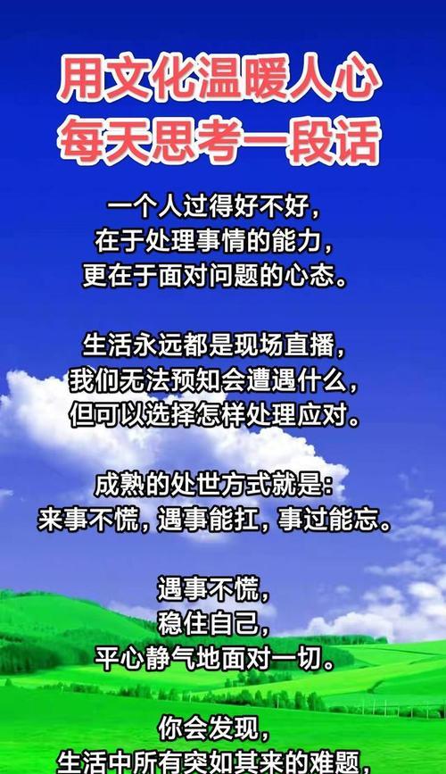 恋爱是人生中的一大体验,但也常常给人带来许多波折和挑战。不管是初恋还是长期恋爱,如何保持平静的心态是非常重要的。下面将分享15个实用技巧,帮助你稳住心态。  一:认识自己的情绪 在恋爱中,情绪的波动是正常的。但是,我们需要了解自己的情绪,并学会控制它们。每个人都有不同的情绪和情感,认识自己的情绪和情感,就能更好地控制它们。 二:保持冷静 当你感到紧张或不安时,保持冷静是非常重要的。深呼吸、冥想和放松练习可以帮助你保持冷静。  三:把注意力集中在其他事情上 当你感到紧张或焦虑时,把注意力集中在其他事情上可以帮助你稳住心态。去做一些事情,例如运动、看电影、读书或聚会等等。 四:不要过分关注细节 很多时候,我们会过分关注细节,例如对方的话语或行为。这会导致我们的情绪波动,因此不要太过于纠结于细节。 五:与朋友交流 与朋友交流可以帮助你释放情绪,并获得建议和支持。朋友们可能会给你一些新的想法和观点,帮助你看到事情的不同面。  六:坦诚面对自己的感受 无论你的感受是积极还是消极的,都应该坦诚面对它们。不要压抑自己的感受,因为这会使情况更加糟糕。 七:接受自己的不完美 每个人都有自己的不足之处,不要过于追求完美。接受自己的不完美,可以减少你对自己的压力,并更好地控制情绪。 八:学会宽容 宽容是维持恋爱关系的重要因素之一。学会宽容可以减少争吵和冲突,从而帮助你稳住心态。 九:不要试图控制一切 试图控制一切是徒劳的,因为我们无法控制别人的行为和想法。放弃控制欲可以减轻你的压力,并更好地控制情绪。 十:保持开放心态 保持开放心态可以帮助你更好地理解对方,并获得更深层次的交流。学会倾听和理解,可以减少误解和争吵。 十一:不要忽略自己的需要 在恋爱中,不要忽略自己的需要。无论是需要空间还是需要支持,都应该坦诚表达,以保持情绪的稳定。 十二:不要把恋爱当做生命中的全部 虽然恋爱是人生中的一大体验,但不要把它当做生命中的全部。保持平衡,关注其他重要事情,可以帮助你保持平静的心态。 十三:了解对方的需求 了解对方的需求和想法可以帮助你更好地处理情感问题,并减少争吵和冲突。 十四:学会寻求帮助 如果你感到无法应对情绪问题,不要害羞或不好意思寻求帮助。寻求心理治疗或咨询可以帮助你更好地控制情绪。 十五: 恋爱中的情绪波动是正常的,但学会稳住心态可以帮助你更好地处理情感问题。通过认识自己的情绪、保持冷静、与朋友交流等实用技巧,可以帮助你保持平静的心态。 |