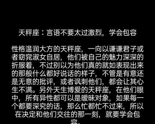 在恋爱过程中,我们难免会遇到一些矛盾和分歧。即使两个人深爱彼此,也难免会出现分手的情况。如果你是一个天蝎男友的女友,你们之间发生了矛盾,你该如何重新挽回他的心呢?  一、认清问题,审视自己 在尝试挽回天蝎男友的过程中,首先要认真审视自己所犯的错误。要想知道如何修复你们之间的问题,你必须得清楚自己所做的事情,找出原因并努力改正。 二、发现问题,解决问题 在审视自己后,你需要找出你们之间的问题,并想办法解决它们。要彻底地解决这些问题,你需要花费一些时间和精力。  三、给他足够的时间和空间 如果你想挽回天蝎男友的心,你需要给他足够的时间和空间。这个过程需要耐心和等待,并且不能急于求成。 四、认真倾听他的意见 当你想挽回天蝎男友的心时,你需要认真倾听他的意见。不要在这个过程中强行发表你自己的意见,而是应该尝试理解他所说的话。 五、借助朋友的力量 在挽回天蝎男友的过程中,你可以向朋友寻求帮助。他们可能会给你一些关于如何挽回天蝎男友的建议。  六、保持沟通和联络 在挽回天蝎男友的过程中,保持沟通和联络是非常重要的。这样可以使你们之间的距离更近,也可以增加你们之间的信任感。 七、尝试做一些小事情 为了挽回天蝎男友的心,你可以尝试做一些小事情来让他感到温暖和关心。这样做可以使他重新感受到你对他的爱和关心。 八、重拾旧时光 回忆起你们在一起的美好时光。这可以让你们重新感受到当初相爱时的美好感觉,也会让他重新对你产生好感。 九、展示自信和独立 在挽回天蝎男友的过程中,展示自信和独立是非常重要的。这样可以让他觉得你是一个坚强、自信和有能力的人。 十、改变自己,成为更好的自己 在挽回天蝎男友的过程中,改变自己,成为更好的自己是非常重要的。这样可以让他重新感受到你的魅力和吸引力,也能够增加你们之间的吸引力。 十一、尝试寻求专业帮助 如果你觉得自己无法处理挽回天蝎男友的问题,你可以寻求专业帮助。这可以帮助你找到正确的方法来解决问题。 十二、不要试图控制他 在挽回天蝎男友的过程中,不要试图控制他。你需要给他足够的自由和空间,让他做出自己的选择。 十三、对他诚实和坦率 在挽回天蝎男友的过程中,对他诚实和坦率是非常重要的。不要隐瞒任何事情,让他知道你真实的想法和感受。 十四、不要执着于过去 在挽回天蝎男友的过程中,不要执着于过去。你需要放下过去的矛盾和误解,重新开始一段新的恋情。 十五、相信爱情,坚持不懈 在挽回天蝎男友的过程中,相信爱情,并坚持不懈地努力。只要你真正相信你们之间的爱情,你就能够最终挽回他的心。 挽回天蝎男友的心是一个充满挑战的过程,需要耐心、信任和坚持。只要你遵循正确的方法,花费足够的时间和精力,你就有机会重新获得他的心。 |