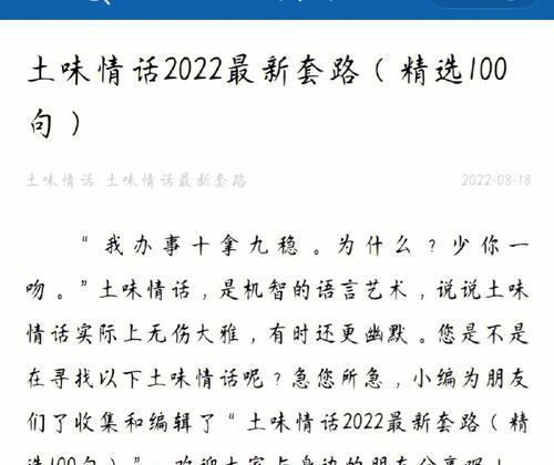 | 标题 | 甜蜜撒娇,挑逗男友,情话八字不离口(撩人情话教程,恋爱必备攻略,挑逗男友的绝招) |