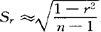 样本分布的一种。样本相关系数的抽样分布。其分布形式随总体相关系数ρ和样本容量n变化而变化。当两变量总体相关系数ρ=0时,统计量 (即其样本相关系数)服从自由度为n-2的t分布,r的标准误为 。当两变量总体相关系数ρ≠0,而n很大时(n≥500),r的分布渐近正态分布,其标准误近似地为 。根据r抽样分布及统计量t或标准误Sr,可对相关系数进行假设检验及区间估计。当n≤500时,R.A.费希尔提出作如下变换z= ln ,式中,ln表示自然对数,z近似服从正态分布N(ρ, )。根据相关系数的分布及其标准误,可对相关系数进行假设检验和参数估计。 |