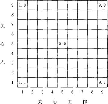 一种领导行为模式理论。1964年由美国德克萨斯大学R.R.布莱克和J.S.莫顿提出。他们把俄亥俄学派的领导四分图的关心人和关心工作两个维度各分成9等份,构成一个方格图。在理论上可派生出81种不同的领导类型,但典型的类型有以下五种(如图):1.1型——既不关心工作也不关心人,生产效率低,士气低落;9.1型——只关心工作,不关心人,生产效率高,但士气低;9.9型——既关心工作,又关心人,士气和工作效率都高;1.9型——关心人但不关心工作,人际关系较好,但工作无起色;5.5型——关心人和关心工作都处于中等程度,工作业绩和士气也都达到中等水平。管理方格主要用于管理者训练,以便使他们的领导方式向9.9型接近。