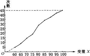 统计数据表示方式的一种。根据累积次数分布表绘制出来的统计图。其横坐标轴为数据变量,纵坐标轴为各组累积次数(如图)。